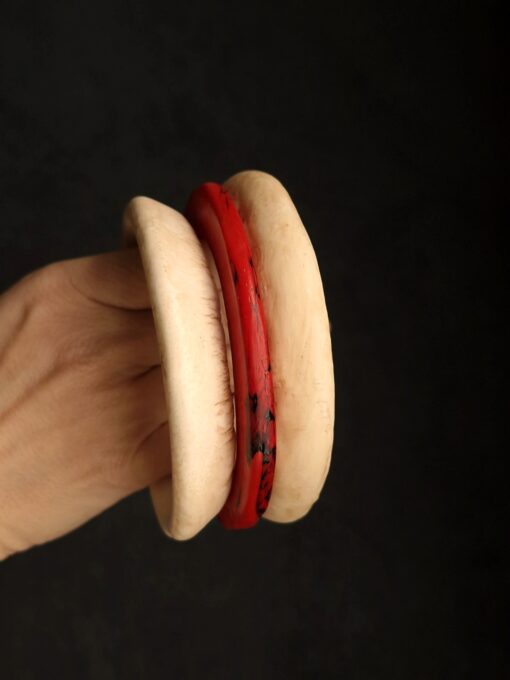 Set of 4 Vegan Ivory, Black & Red Bangle Set – Size L (7.0 cm/2.8 in)