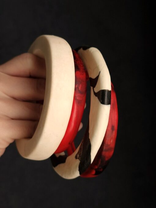 Set of 5 Vegan Ivory, Red & Black Bangles (Set of 5) – Size L – XL (7.2 cm/2.9 in)