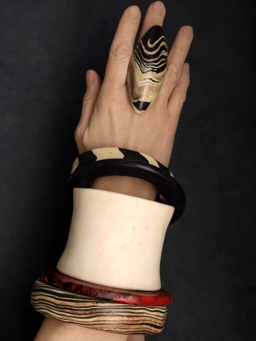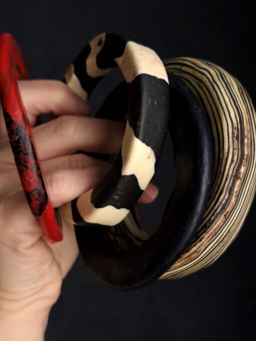 Set of 5 Vegan Ivory, Red & Black Bangles – Size M – L (7.0 cm/2.7 in)