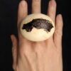 Vegan Ivory Jewellery: Clean with damp cloth or rinse gently in cold water. Do not leave the pieces lying in direct sunlight or expose them to high temperatures, such as saunas, incandescent bulbs in glass cases, vehicles standing in the sun or dishwashers. If you care for your pieces, they will give you many years of joy!