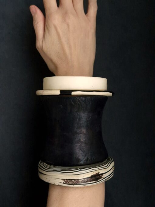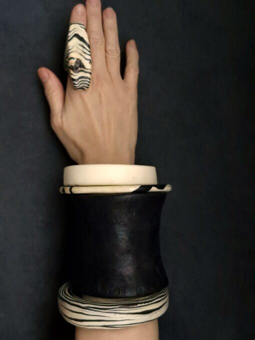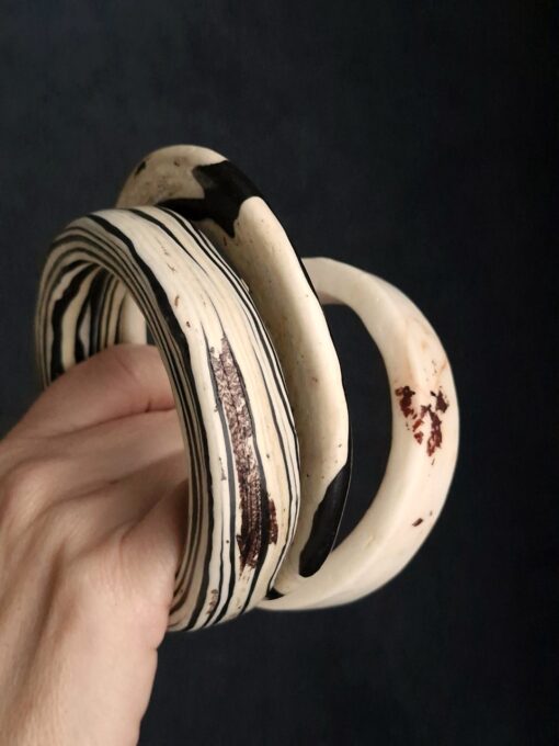 Set of 4 Vegan Ivory & Black Bangles – Size L (7.0 cm/2.8 in)