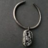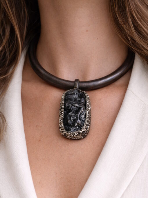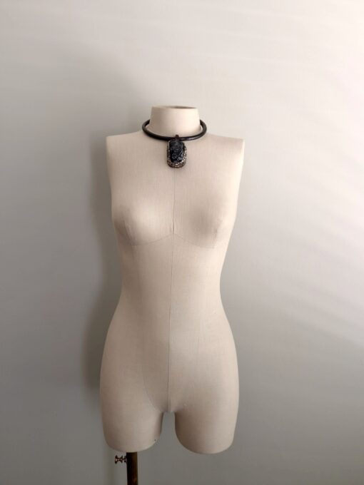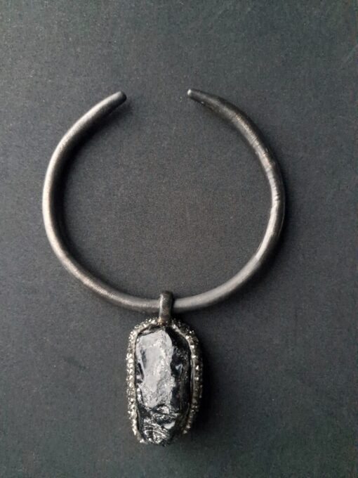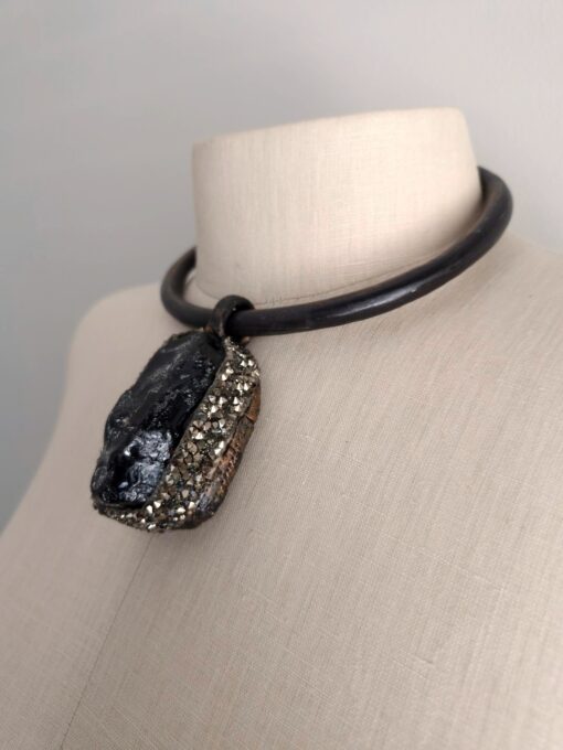 Black Obsidian Pendant on Black with Gold Sheen Collar Necklace – Adjustable Size