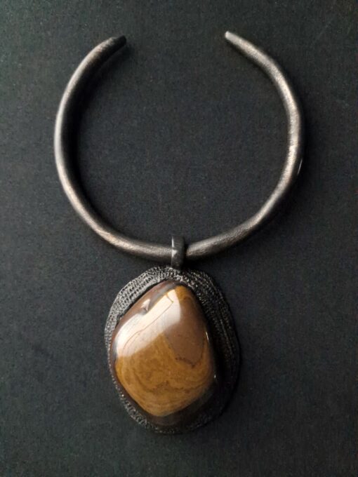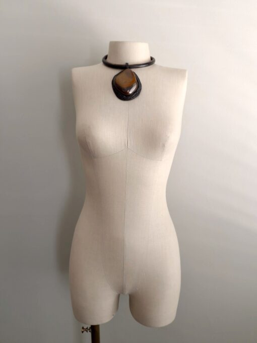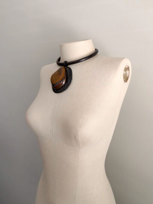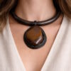 Tiger’s Eye Pendant on Black with Gold Sheen Collar Necklace – Adjustable Size