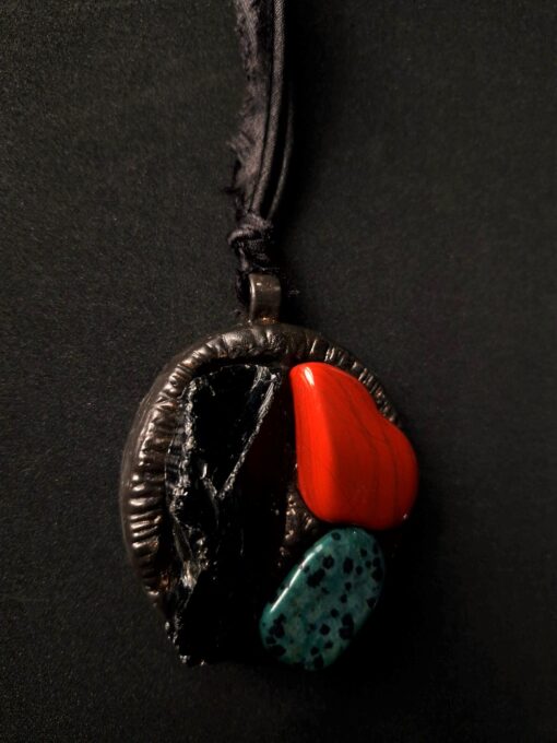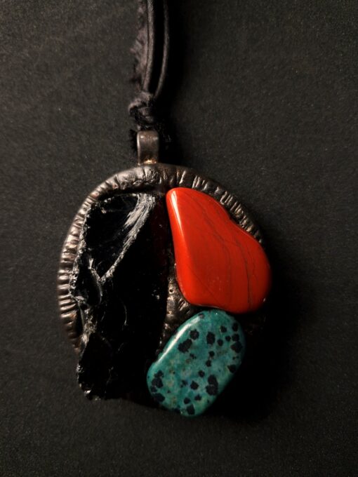 Black Obsidian, Red Jasper & Green Dalmation Jasper Necklace (Adjustable Length)