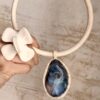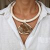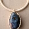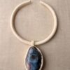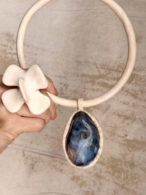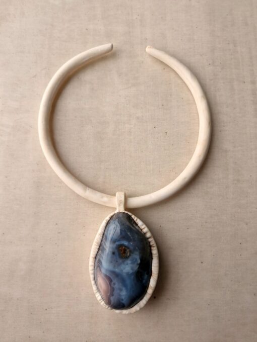 Vegan Ivory Collar Necklace with Blue Agate Pendant – Adjustable Size