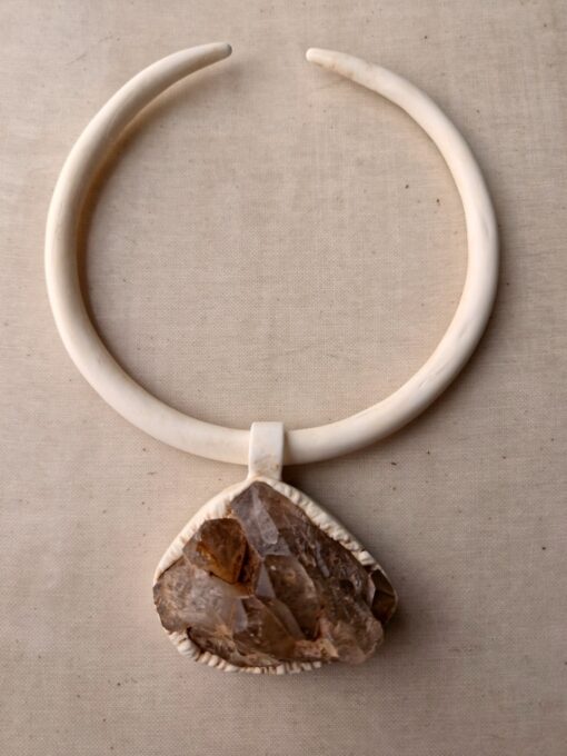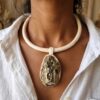 Vegan Ivory Collar Necklace with Orange River Crystal Pendant – Adjustable Size