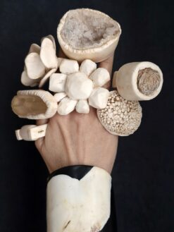 Vegan Ivory Jewellery: Clean with damp cloth or rinse gently in cold water. Do not leave the pieces lying in direct sunlight or expose them to high temperatures, such as saunas, incandescent bulbs in glass cases, vehicles standing in the sun or dishwashers. If you care for your pieces, they will give you many years of joy!