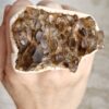 Vegan Ivory Jewellery: Clean with damp cloth or rinse gently in cold water. Do not leave the pieces lying in direct sunlight or expose them to high temperatures, such as saunas, incandescent bulbs in glass cases, vehicles standing in the sun or dishwashers. If you care for your pieces, they will give you many years of joy!