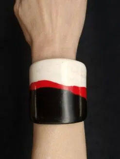 Vegan Ivory, Black & Red Flat Cuff – Size M