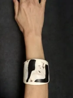 Vegan Ivory & Black Flat Cuff – Size Large (6.0 cm / 2.4 in)