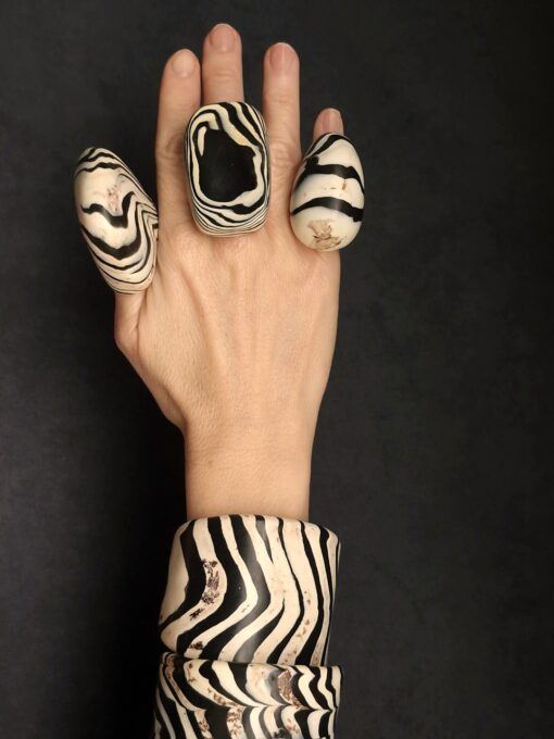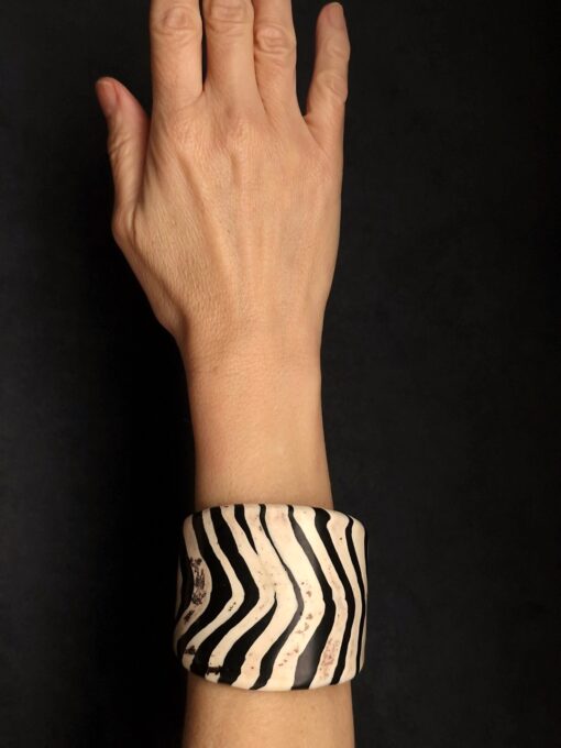 Vegan Ivory & Black Flat Cuff – Size Medium (5.6 cm / 2.2 in)