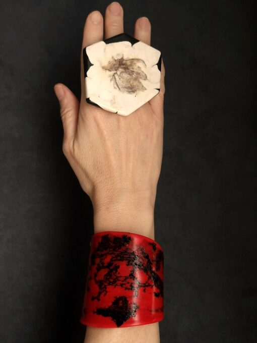 Vegan Ivory Jewellery: Clean with damp cloth or rinse gently in cold water. Do not leave the pieces lying in direct sunlight or expose them to high temperatures, such as saunas, incandescent bulbs in glass cases, vehicles standing in the sun or dishwashers. If you care for your pieces, they will give you many years of joy!
