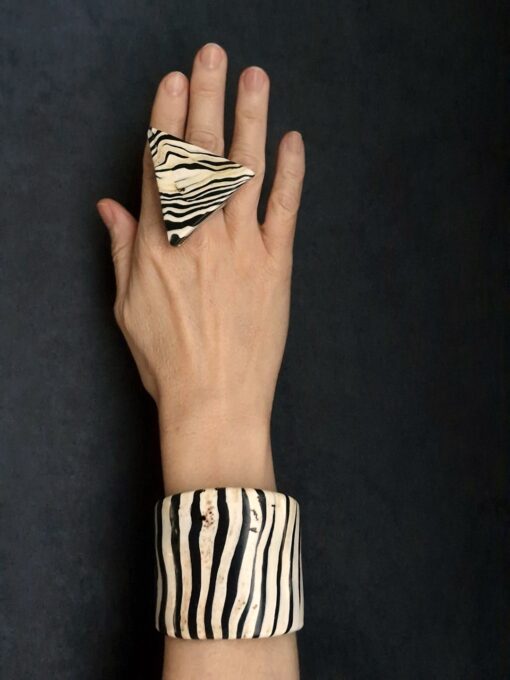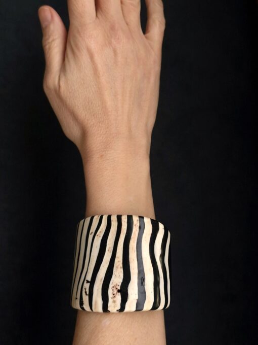 Black & Vegan Ivory Flat Cuff – Size S – M