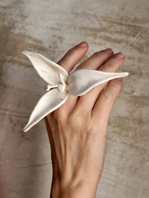 Vegan Ivory Jewellery: Clean with damp cloth or rinse gently in cold water. Do not leave the pieces lying in direct sunlight or expose them to high temperatures, such as saunas, incandescent bulbs in glass cases, vehicles standing in the sun or dishwashers. If you care for your pieces, they will give you many years of joy!