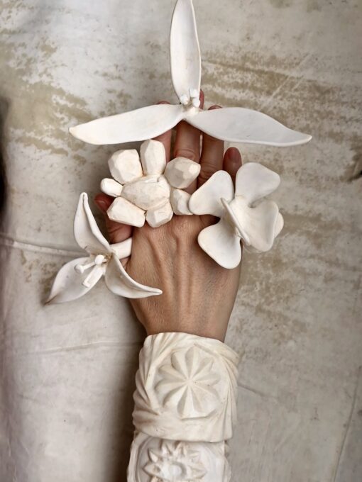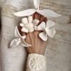 Vegan Ivory Jewellery: Clean with damp cloth or rinse gently in cold water. Do not leave the pieces lying in direct sunlight or expose them to high temperatures, such as saunas, incandescent bulbs in glass cases, vehicles standing in the sun or dishwashers. If you care for your pieces, they will give you many years of joy!