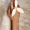 Vegan Ivory Jewellery: Clean with damp cloth or rinse gently in cold water. Do not leave the pieces lying in direct sunlight or expose them to high temperatures, such as saunas, incandescent bulbs in glass cases, vehicles standing in the sun or dishwashers. If you care for your pieces, they will give you many years of joy!