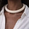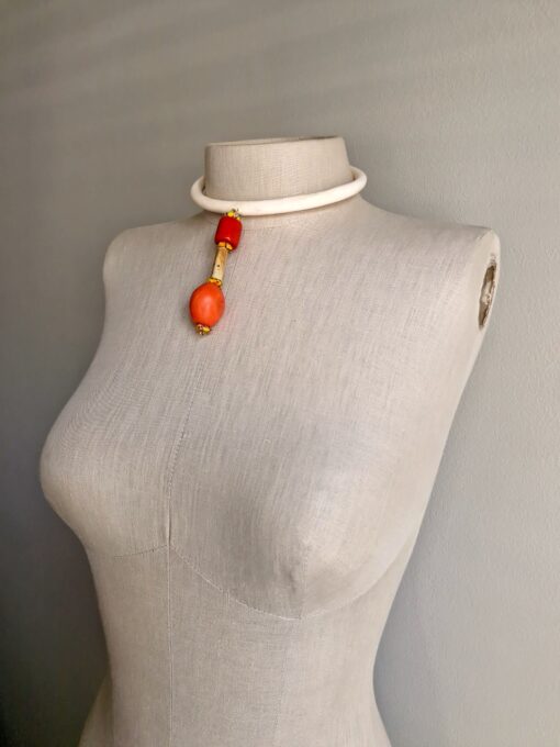 Vegan Ivory Collar Necklace with Orange & Yellow Pendant – Adjustable Size