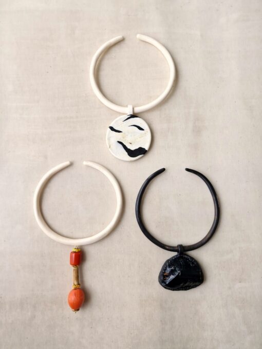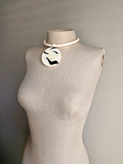 Vegan Ivory & Black Collar Necklace – Adjustable Size