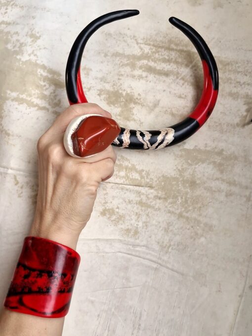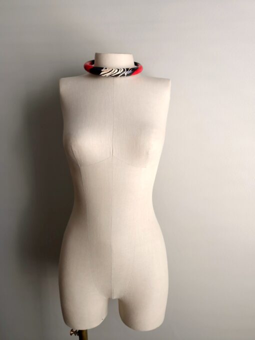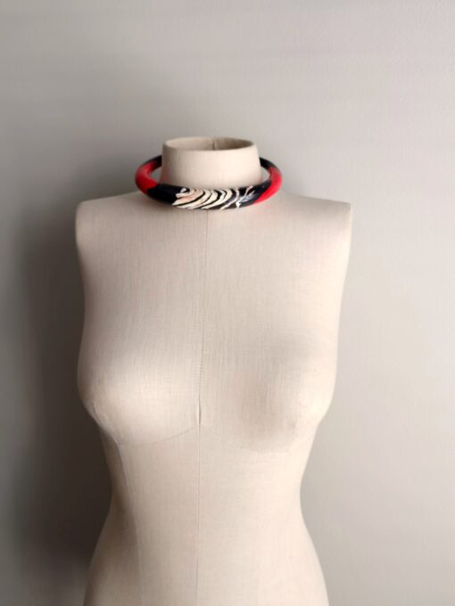 Vegan Ivory, Black & Red Collar Necklace – Size Large