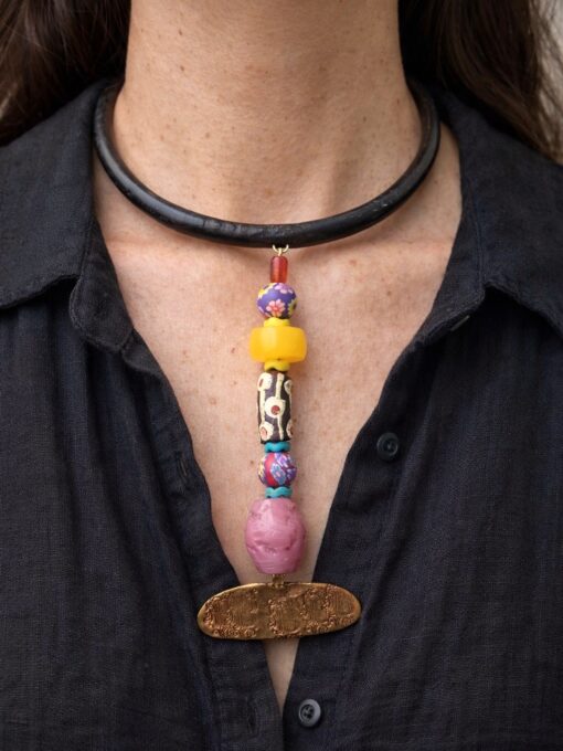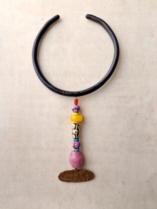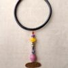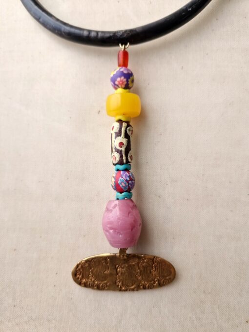 Black Collar Necklace with Multicolored Bead Pendant – Adjustable Size