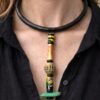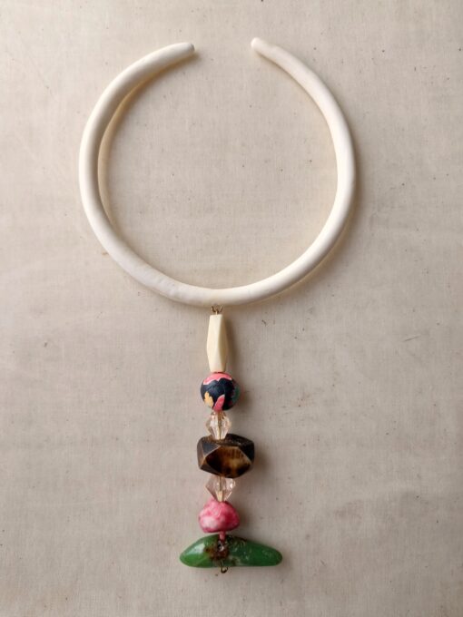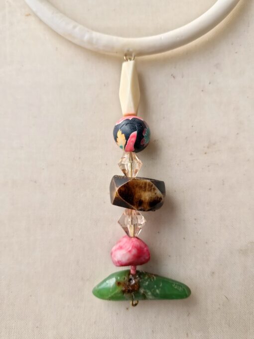 Vegan Ivory Collar Necklace with Pink & Green Bead Pendant – Adjustable Size