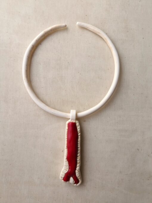 Vegan Ivory Collar Necklace with Red & Vegan Ivory Pendant – Adjustable Size