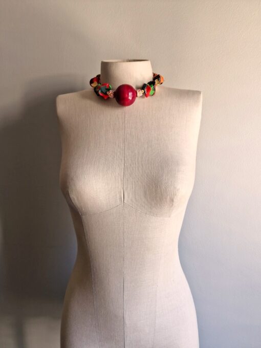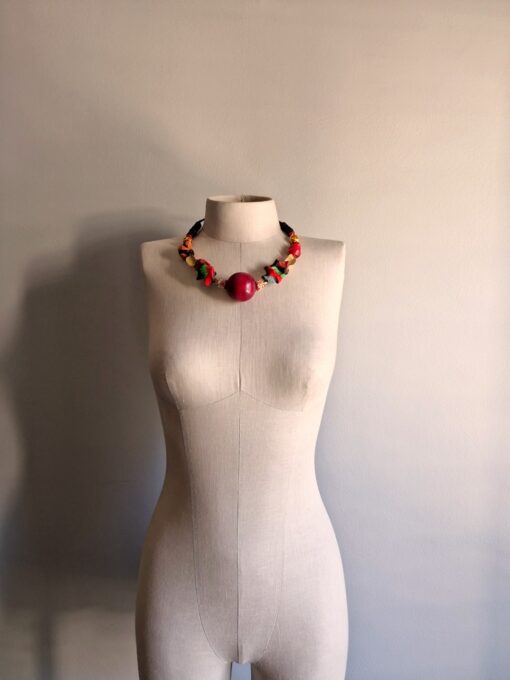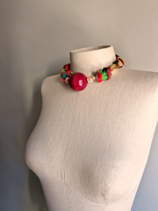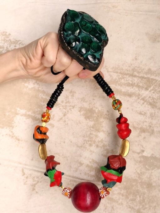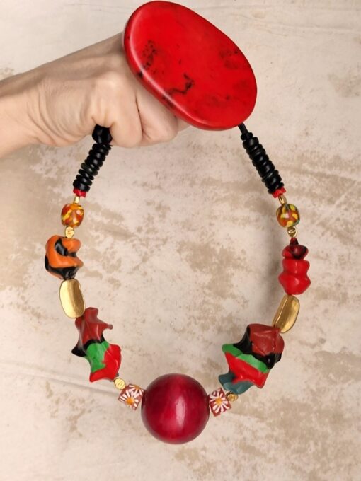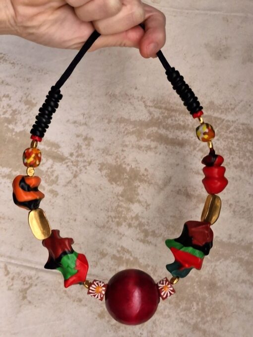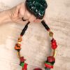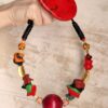 Green, Red & Orange with Nickle-Free Gold Plated Beads Necklace (Adjustable Length)
