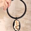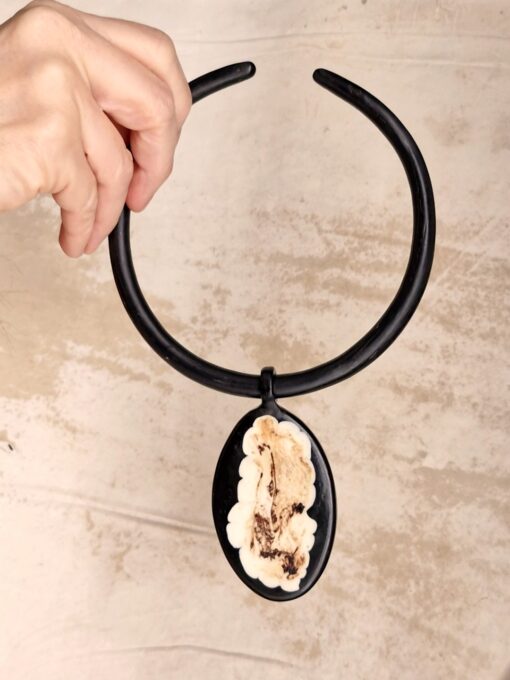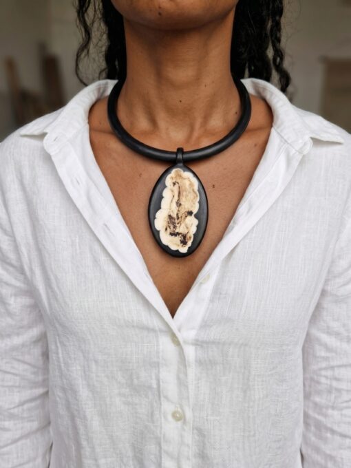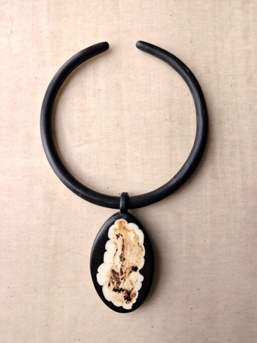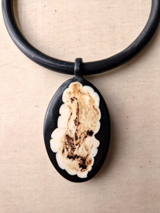 Black Collar Necklace with Black & Vegan Ivory Pendant – Adjustable Size