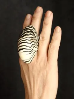 Vegan Ivory & Black Ring – Size 8.5
