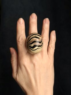 Vegan Ivory & Black Ring – Size 7.5