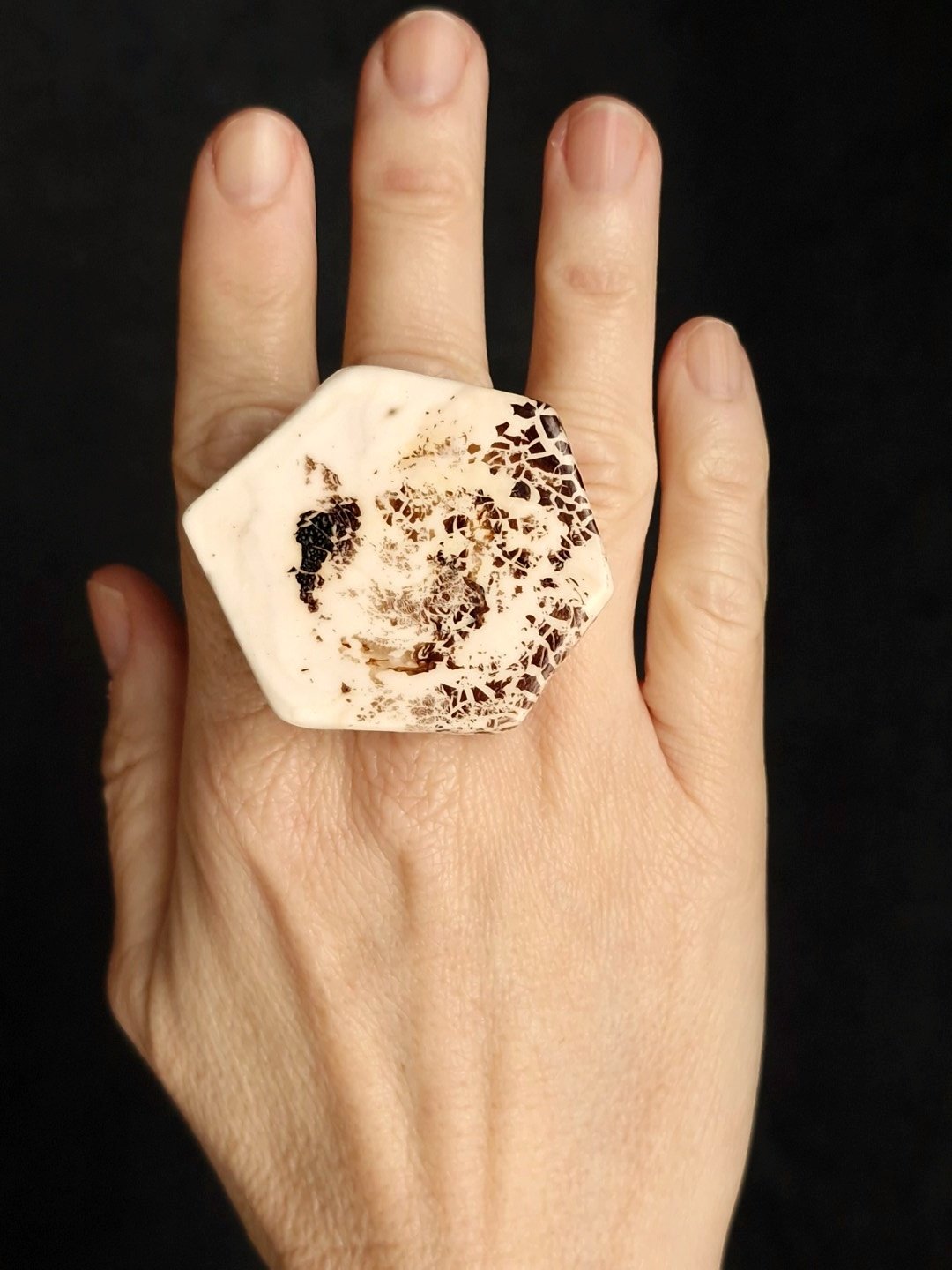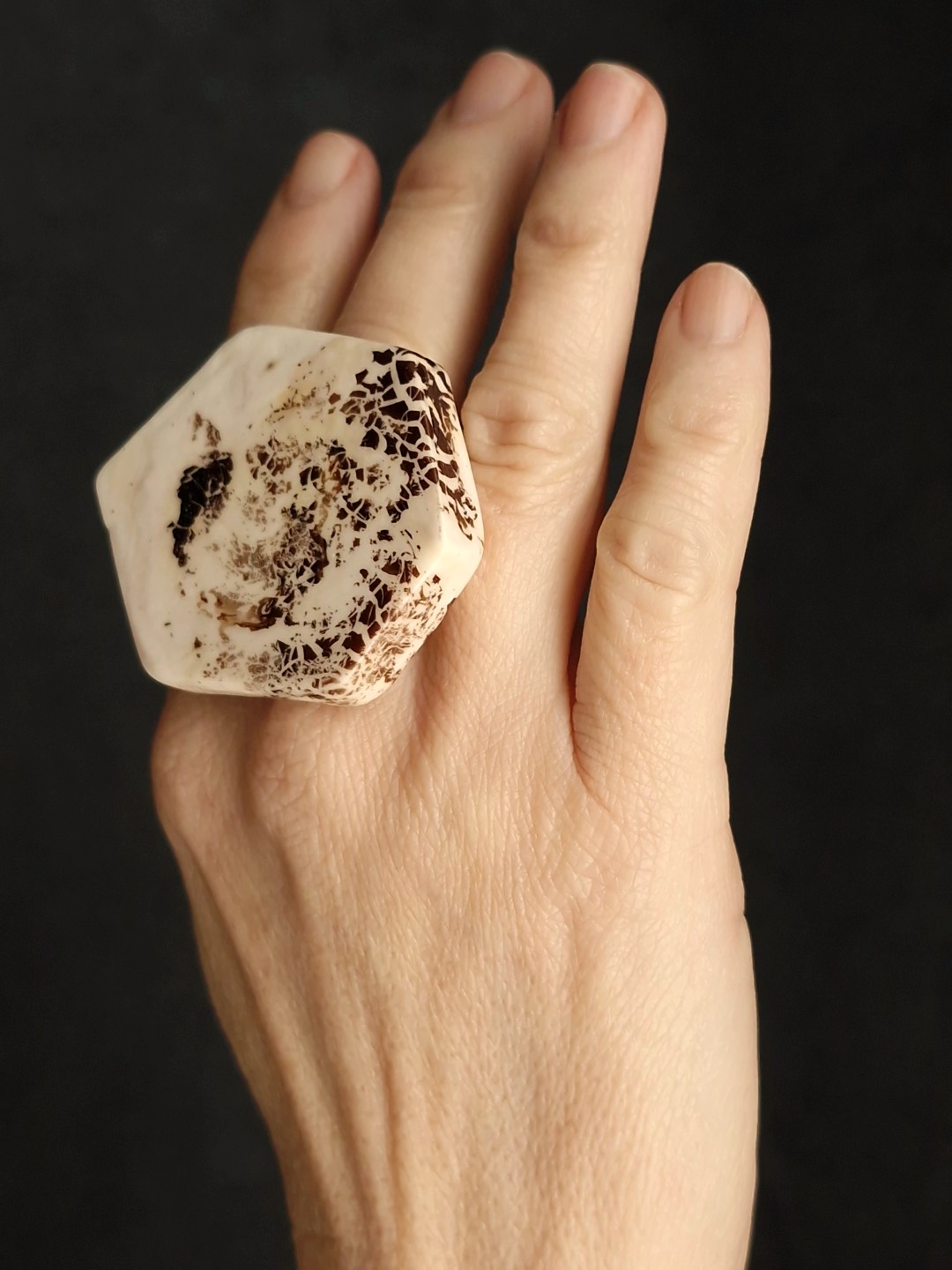 Vegan Ivory Jewellery: Clean with damp cloth or rinse gently in cold water. Do not leave the pieces lying in direct sunlight or expose them to high temperatures, such as saunas, incandescent bulbs in glass cases, vehicles standing in the sun or dishwashers. If you care for your pieces, they will give you many years of joy!