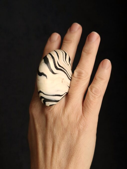 Vegan Ivory & Black Ring – Size 8.5