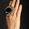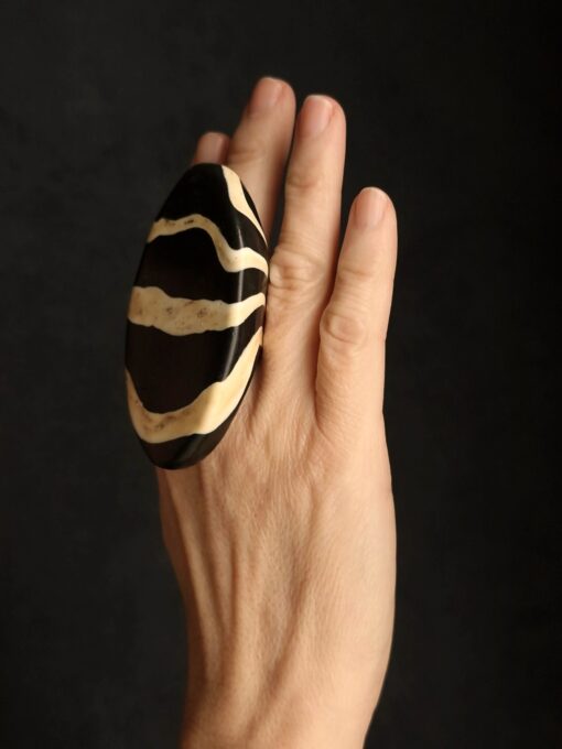 Vegan Ivory & Black Ring – Size 7.5