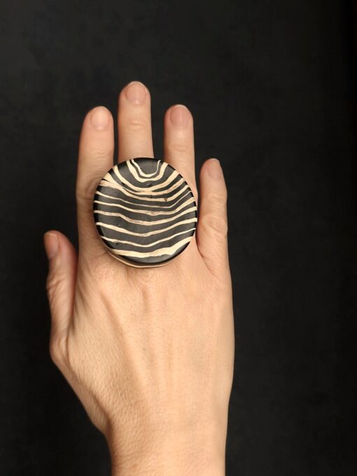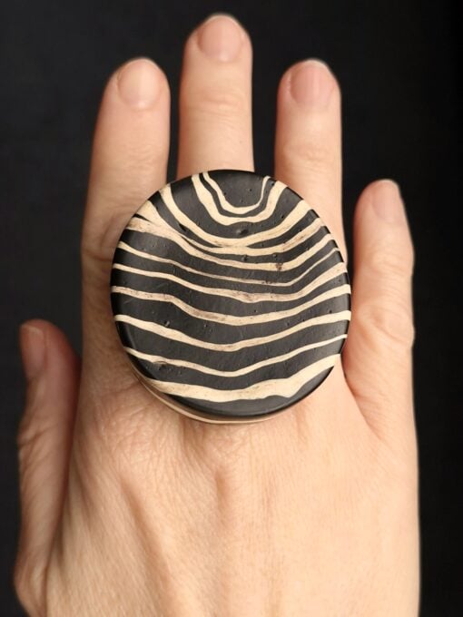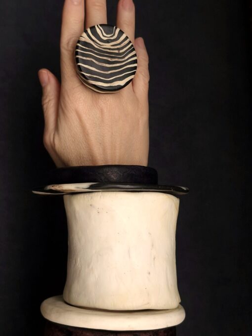 Vegan Ivory & Black Ring – Size 7