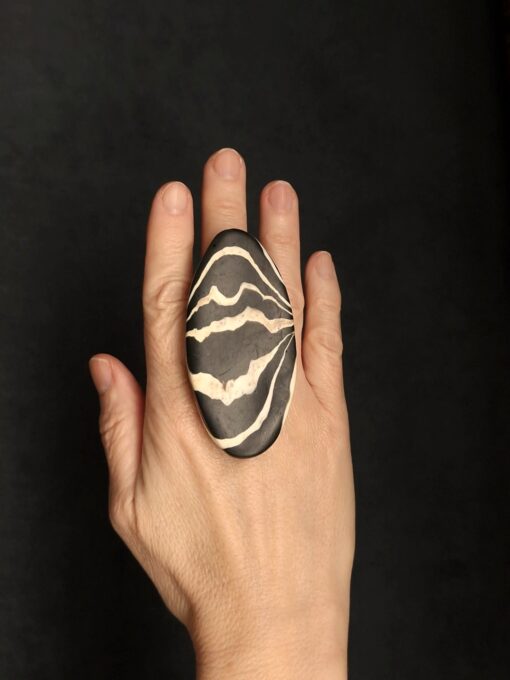 Vegan Ivory & Black Ring – Size 8.5