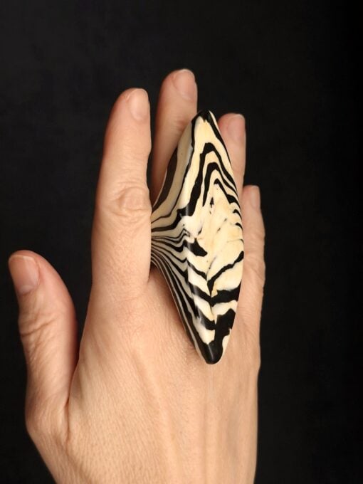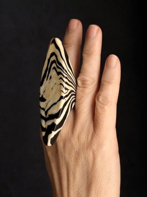 Vegan Ivory & Black Ring – Size 8