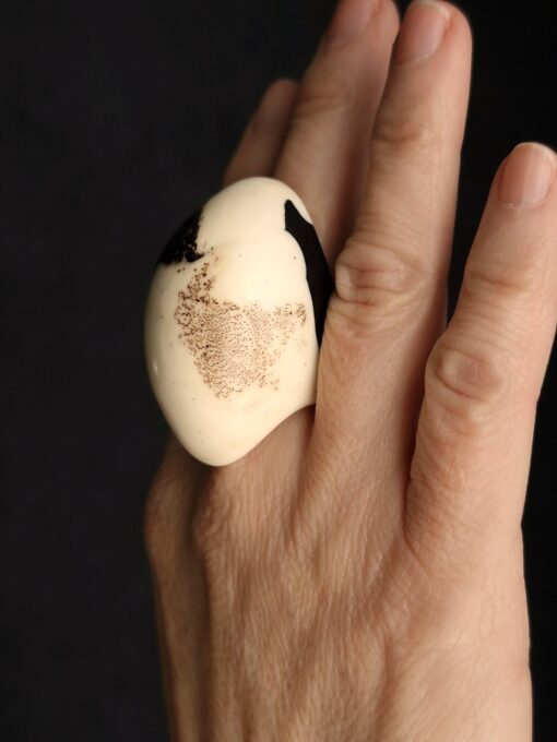 Vegan Ivory & Black Ring – Size 7.5