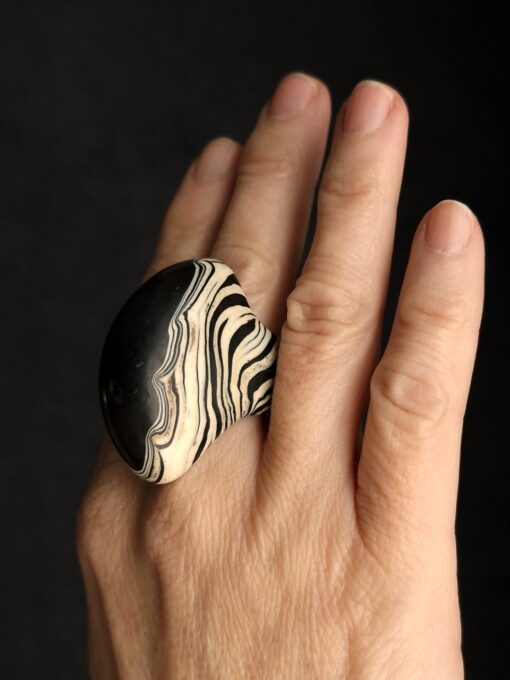 Black & Vegan Ivory Ring – Size 6.5