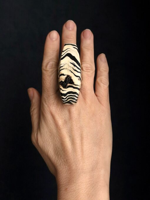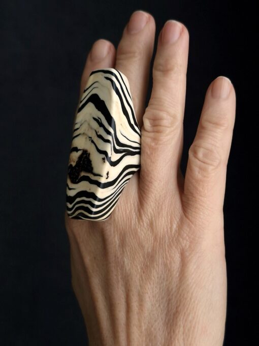 Vegan Ivory & Black Ring – Size 7.5