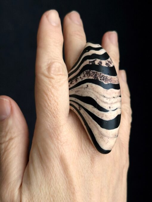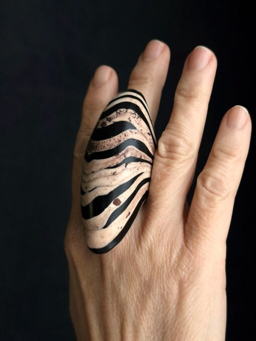 Vegan Ivory & Black Ring – Size 9