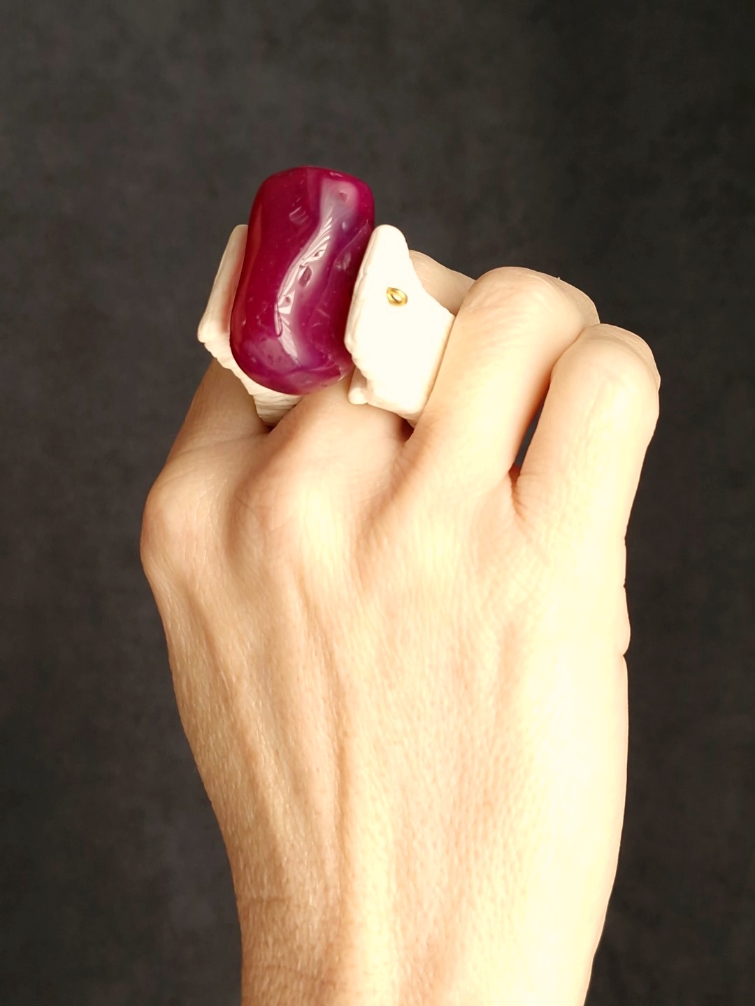 Pink & Vegan Ivory Spin Ring – Size 8.5