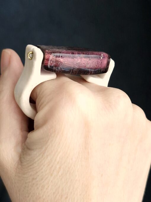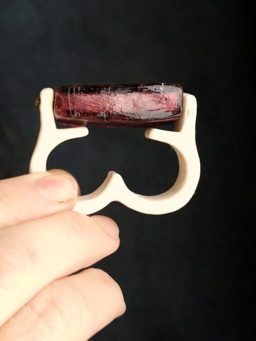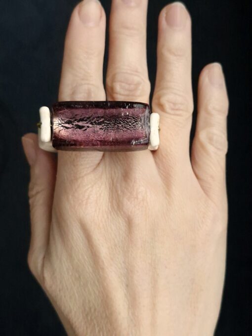Purple Glass Bead & Vegan Ivory Double Finger Spin Ring – Size 8.5 & 9