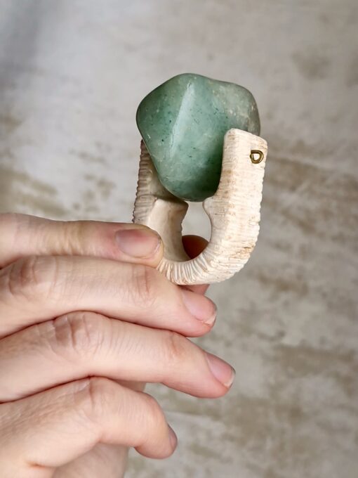 Green Aventurine Vegan Ivory Spin Ring – Size 8
