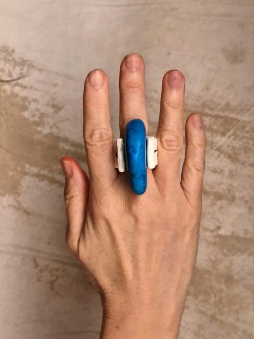 Blue Howlite & Vegan Ivory Spin Ring – Size 7.5