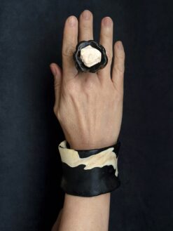 Black & Vegan Ivory Sculptured Ring – Size 7