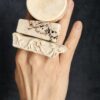 Vegan Ivory Jewellery: Clean with damp cloth or rinse gently in cold water. Do not leave the pieces lying in direct sunlight or expose them to high temperatures, such as saunas, incandescent bulbs in glass cases, vehicles standing in the sun or dishwashers. If you care for your pieces, they will give you many years of joy!