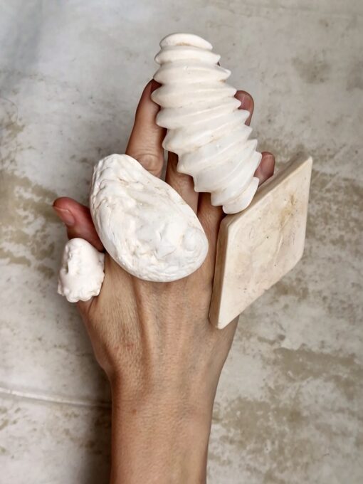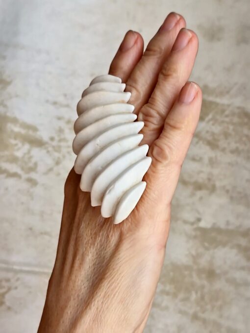 Vegan Ivory Jewellery: Clean with damp cloth or rinse gently in cold water. Do not leave the pieces lying in direct sunlight or expose them to high temperatures, such as saunas, incandescent bulbs in glass cases, vehicles standing in the sun or dishwashers. If you care for your pieces, they will give you many years of joy!